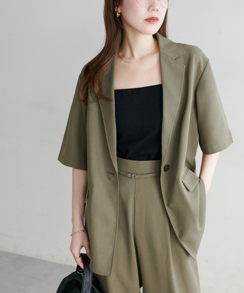 メンズライクなサイズ感で、セットアップで着ても